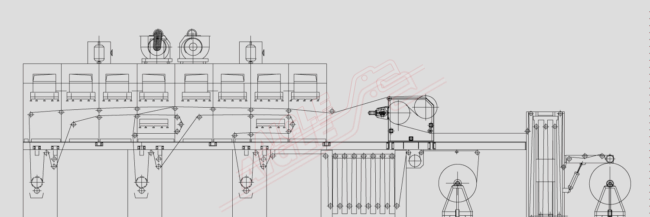 Die Druckwerke sind mit einer gummierten Stützwalze (Ø mm. 300) und einer Druckgruppe mit 2 konischen Spannfuttern ausgestattet, auf denen der Druckzylindermantel montiert ist. Die Futter sind mit einer pneumatischen Schnellspannvorrichtung und mit einem Querkorrektursystem ausgestattet. Die Gruppe wird von einem Wechselstrommotor angetrieben, der mit einem Wechselrichter für die Synchronisierung mit dem Rest der Linie ausgestattet ist. Für die Einstellung der Druckzylindergeschwindigkeit kann eine Tänzerwalze mit pneumatischer Steuerung der Stoffspannung verwendet werden.