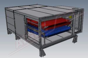 – Estructura del horno; las puertas laterales están colocadas a lo largo de los laterales con juntas de goma de silicona, para permitir un fácil acceso al interior.