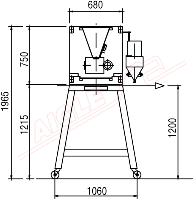 El Unidad de distribución de polvo mod. TDP/M consta de una tolva que contiene polvo, con un cilindro dosificador controlado por inversor de velocidades ajustables situado en su base.