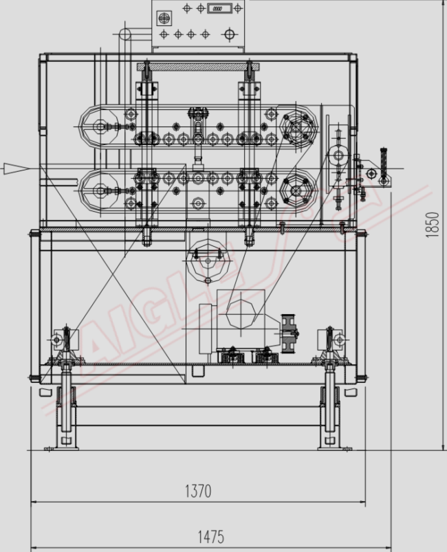 La pression de contact entre les courroies sur le profil est obtenue par un cylindre rétractable et réglée à l’aide d’un volant équipé d’un index gravimétrique.