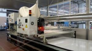 - A Système d’aspiration mod. BB1composé d’une lame d’aspiration à proximité du point de séparation entre la toile et la bande transporteuse. La lame est reliée au ventilateur d’aspiration équipé de manches filtrantes et d’un sac collecteur pour les flocons récupérés.