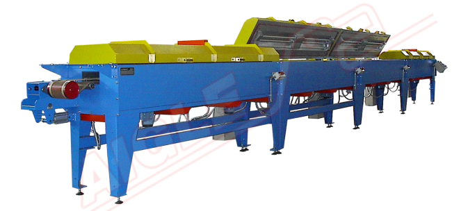 Le Four à infrarouge / à air chaud mod. FIR/AC12/G est divisé en quatre travées de trois mètres chacune et est chauffé par une combinaison d’infrarouges et d’air chaud. L’air est chauffé par des brûleurs à gaz modulés, puis propulsé par une turbine. Le système infrarouge est constitué de lampes radiantes montées sur le panneau supérieur du four.