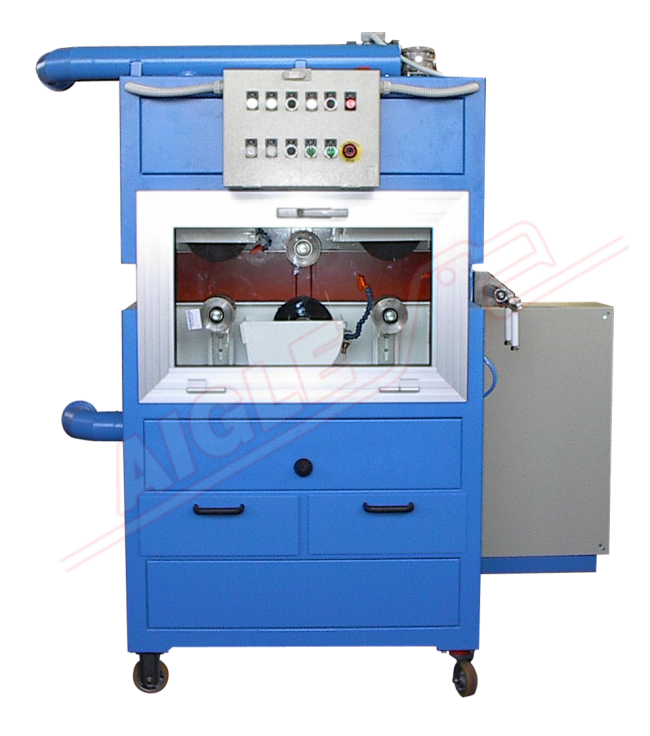 Les deux rangées sont motorisées indépendamment et équipées d’un réglage motorisé de la pression. Pour une bonne récupération des poussières, chaque brosse est équipée d’une hotte d’aspiration reliée à une unité d’aspiration scellée par des portes d’accès transparentes afin d’éviter la dispersion des poussières.