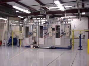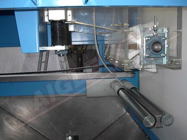 – cabina di pulizia finale attraverso ugelli che soffiano aria alimentata da appositi ventilatori. Un sistema di aspirazione recupera in sacchi filtro il flock in eccesso.