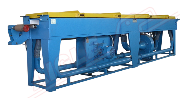 Сайт Принудительный воздушный охлаждающий агрегат мод. АФК после вулканизационной печи устанавливается в линию флокирования профиля; его функция заключается в снижении температуры профиля перед шлифовкой и нанесением клея.