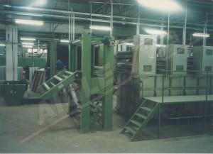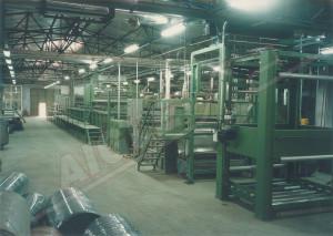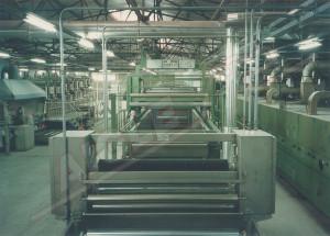 — Ткань, разматываемая с рулонов, продевается через накопитель. В накопителе находится 40 погонных метров основы, что обеспечивает достаточное время для замены пустого рулона на новый и соединения ткани из двух рулонов без остановки линии коагуляции.