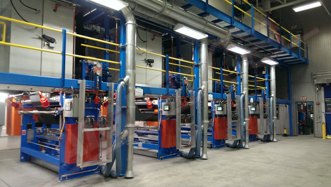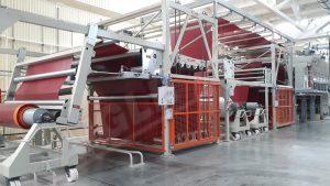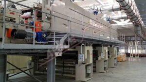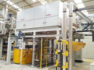 Печатные узлы оснащены обрезиненным опорным валиком (Ø мм. 300), а также печатной группой, оснащенной 2 коническими патронами, на которых закреплен корпус печатного цилиндра. Патроны комплектуются пневматическим быстросъемным устройством, а также системой поперечной коррекции. Группа приводится в движение двигателем переменного тока, оснащенным инвертором для синхронизации с остальной линией. Для регулировки скорости вращения печатного цилиндра может быть использован танцующий валик с пневматическим управлением натяжением ткани.