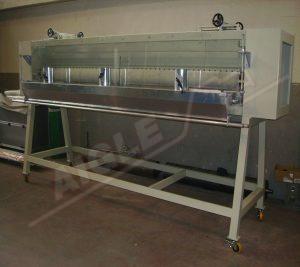Для регулировки выхода порошка используется ракель, расположенный напротив цилиндра. Вращающаяся щетка установлена напротив цилиндра и служит для удаления порошка и распределения его по ткани под ним. Скорость вращения щеток регулируется и управляется инвертором. Осмотр устройства возможен через плексигласовые панели.